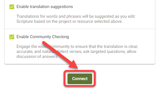 Los proyectos Paratext sólo necesitan conectarse una vez dentro de Scripture Forge.