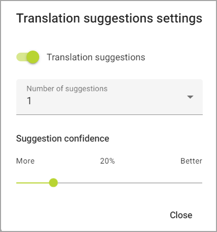 Aparecerá el cuadro de diálogo Configuración de las sugerencias de traducción: