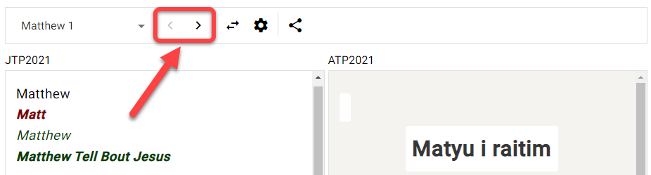 - Las sugerencias de traducción se basan en que Scripture Forge analiza los versículos del proyecto de destino que ya han sido traducidos del proyecto de origen.