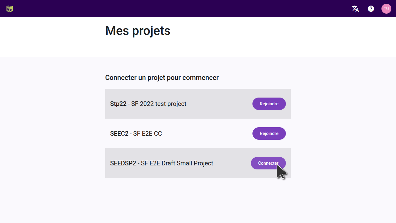 Vous pouvez également cliquer sur l’icône de votre profil en haut à droite de l’écran et dans le menu déroulant cliquer sur « Mes projets ».
