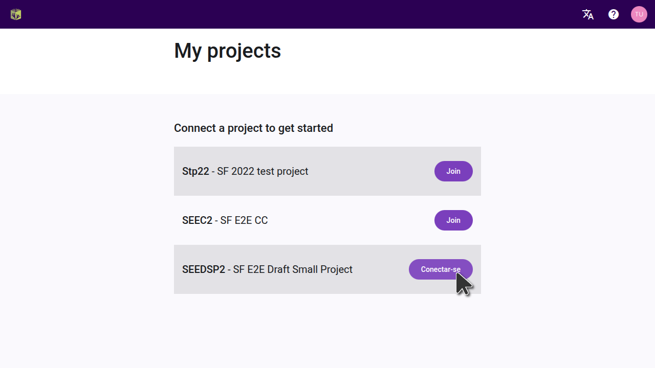 From the displayed list, you shall be able to Open projects if they are already connected. You can also join a project or click on “Connect” to connect a project for the first time in Scripture Forge.