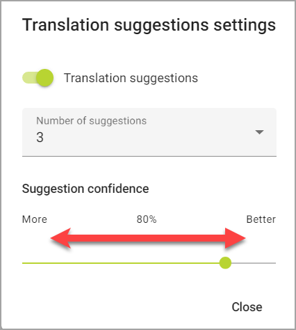 Suggestion confidence: The percentage value that appears above the slider shows the minimum confidence level of the suggestions that will be offered.